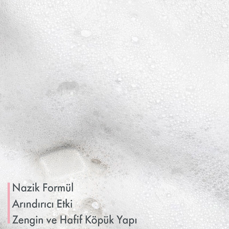 Nazik köpük yapısıyla cildi derinlemesine arındırırken bariyerinin güçlenmesine ve nem dengesinin korunmasına yardımcı köpük.