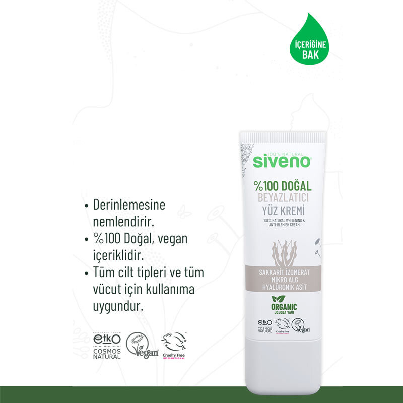 Siveno %100 Doğal Beyazlatıcı Yüz Kremi 30 ml