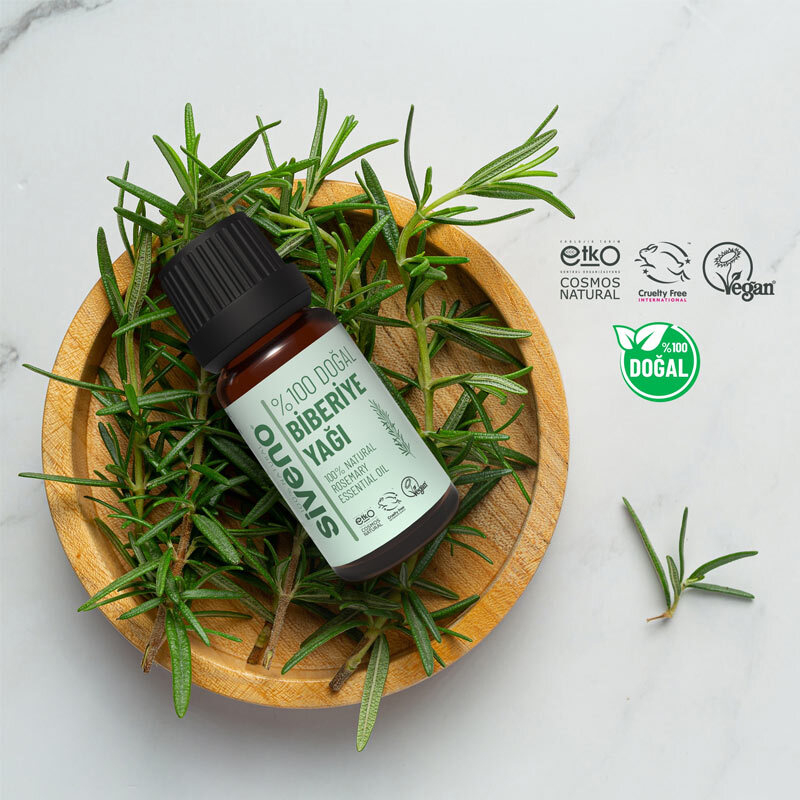 Siveno Doğal Biberiye yağı, biberiye bitkisinin (Rosmarinus officinalis) yapraklarından elde edilen uçucu bir yağdır. Siveno %100 Doğal Biberiye yağı, bitkinin yapraklarının su buharı distilasyonu yöntemiyle elde edilir ve oldukça yoğun, aromatik bir kokuya sahiptir. Böylelikle en iyi etkinlik için maksimum besin ve etkili bileşenler korunmuş olur.