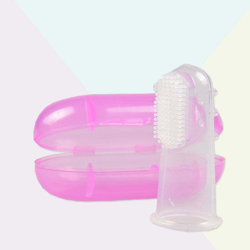 Parmak fırçayı işaret parmağınıza takın, fırça yüzü ile dişlerini fırçalayabilir, kaşıma yüzü ile damaklarını rahatlatmak için masaj yapabilirsiniz.