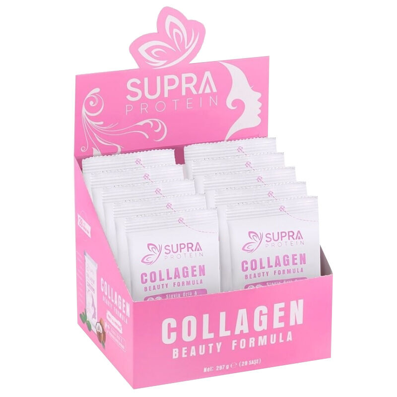 - Supra Protein Collagen Beauty Formula, içeriğindeki kolajen peptidleri, vitaminler ve mikro besinlerin sinerjik etkisiyle sizi içten dışarıya desteklemeye hazır.