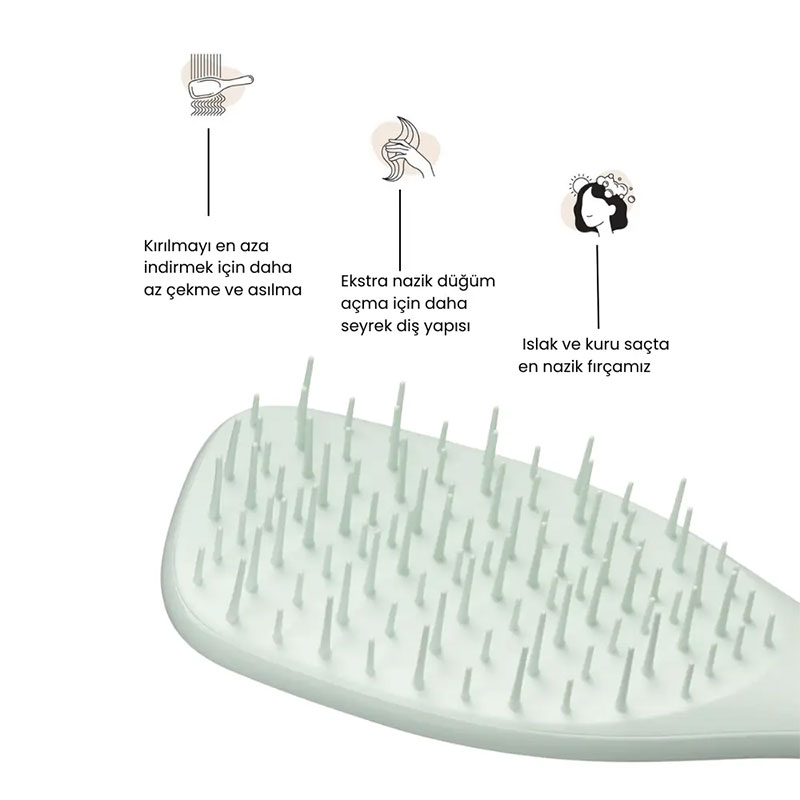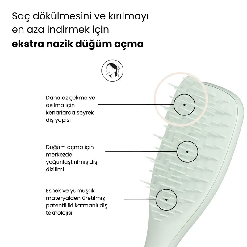 Daha esnek ve yumuşak diş yapısı sayesinde saçları çekmeden açar, kopma ve kırılmaları azaltmaya yardımcı olur.