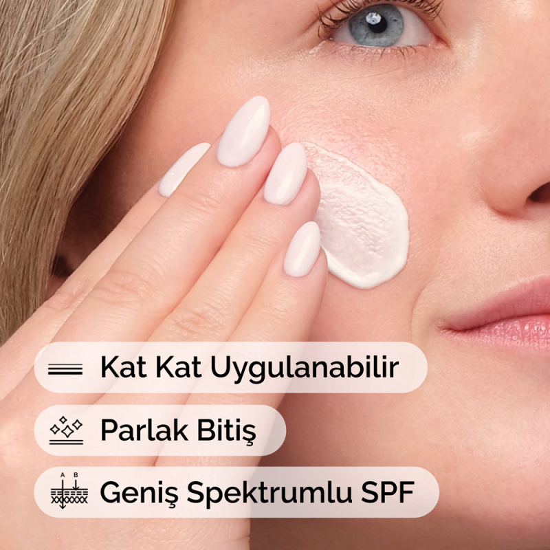 Makyaj ve diğer cilt bakım ürünleriyle uyumludur; kat kat uygulama için idealdir.