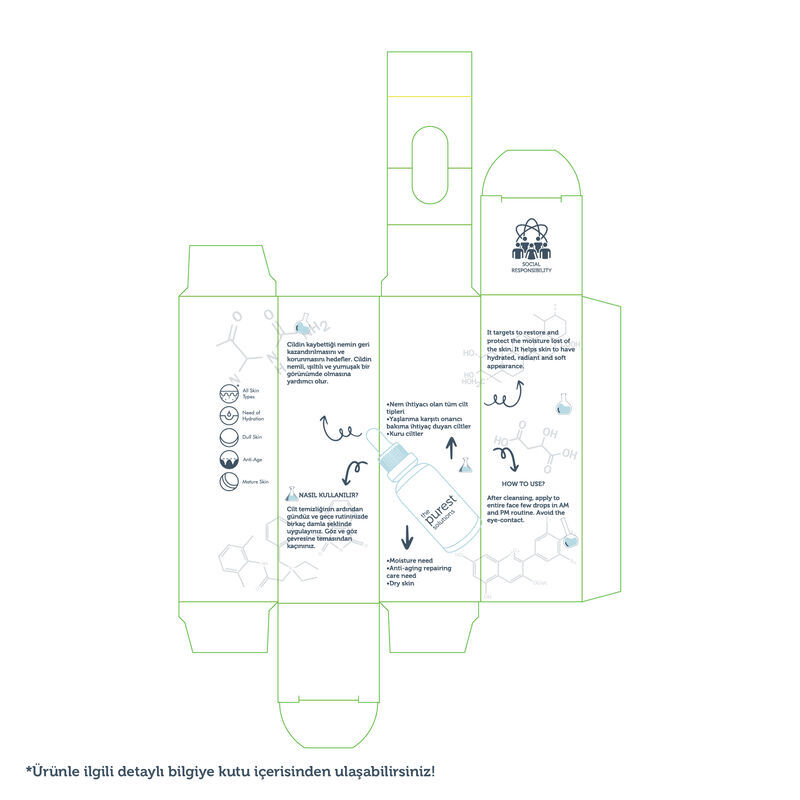 Cildin kaybettiği nemin geri kazandırılmasını ve korunmasını hedefler.Cildin nemli, ışıltılı ve yumuşak bir görünümde olmasına yardımcı olur.