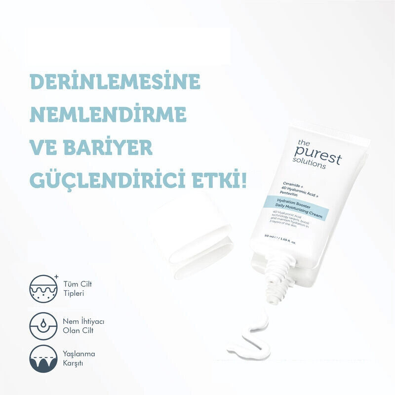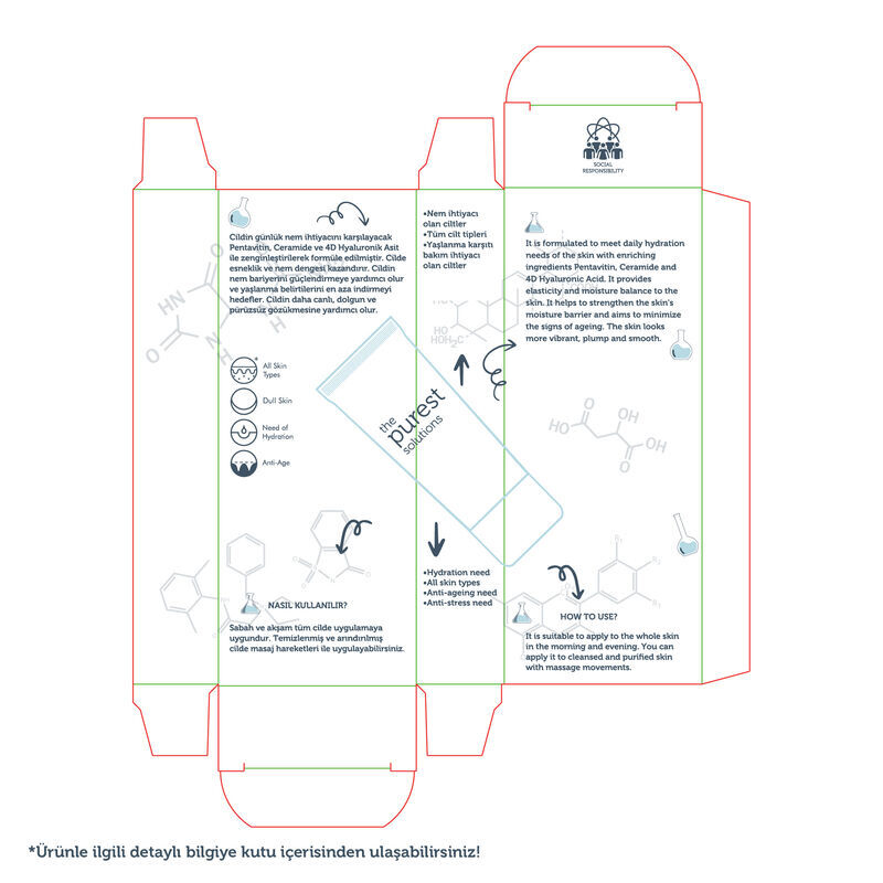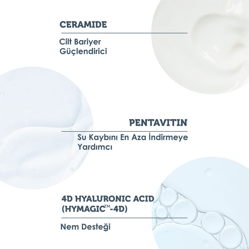 Ürün Faydaları: Cildin günlük nem ihtiyacını karşılayacak Pentavitin, Ceramide ve 4D Hyaluronik Asit ile zenginleştirilerek formüle edilmiştir. Cilde esneklik ve nem dengesi kazandırır. Yaşlanma belirtilerini en aza indirmeyi hedefler. Cildin daha canlı, dolgun ve pürüzsüz gözükmesine yardımcı olur.