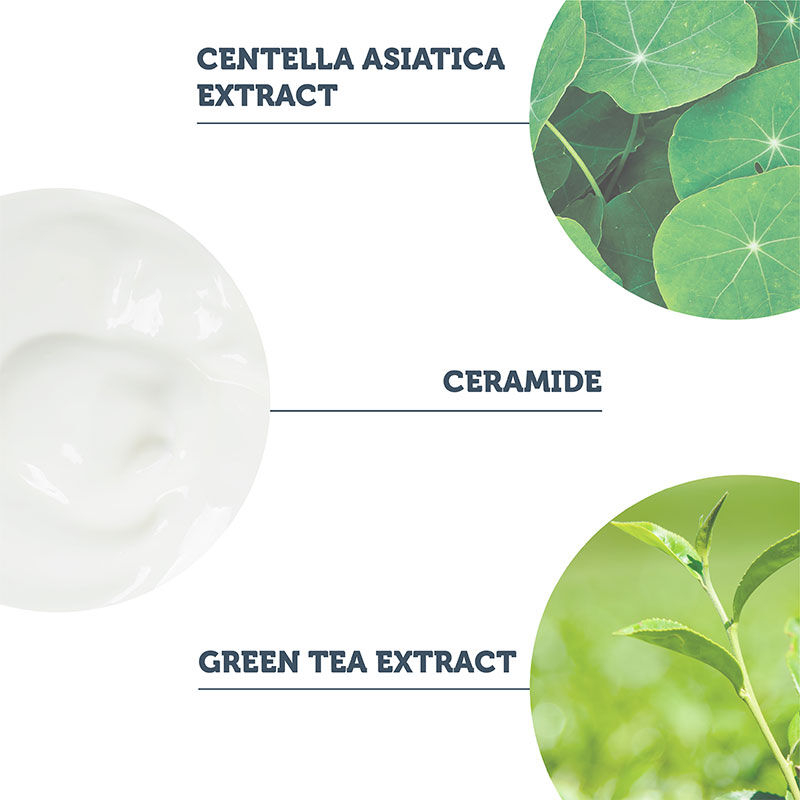 Cildi güneş ışınlarına karşı korurken içerdiği Centella Asiatica ile cildin korunmasında etkilidir.