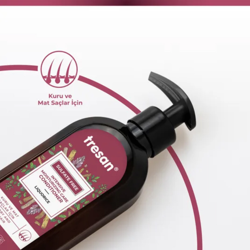- Tresan Meyan Kökü Yoğun Nemlendiric Saç Kremi içeriğindeki Meyan kökü özü ile saçları besleyerek güçlenmelerine ve hasarlara karşı korunmalarına destek olur.