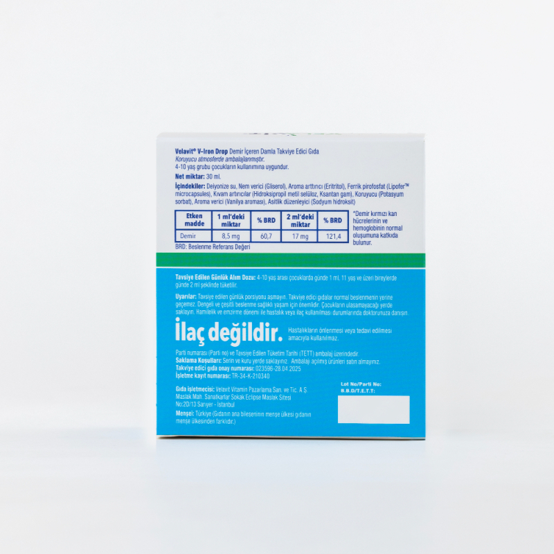 Velavit V-Iron Drop Demir İçeren Damla Takviye Edici GıdaÜrün Markası: