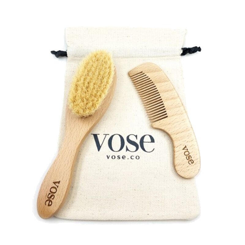 Vose Ahşap 2li Yumuşak Bebek Saç Fırçası- Tarak +0 Ay