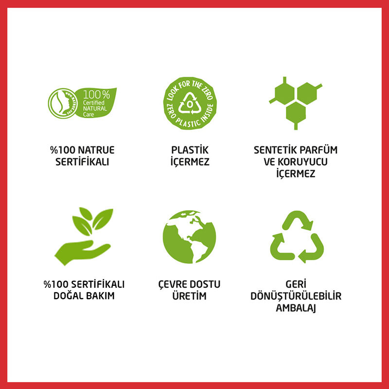 - Organik ve doğal bitki özleri kullanılarak üretilmiştir.