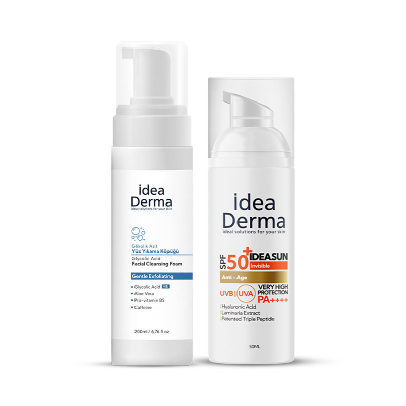 - İdeasun Anti Age SPF50+ Sunscreen 50 ml SPF 50+ geniş spektrumlu UVB/UVA koruması, cildi güneşin zararlı etkilerinden korurken üçlü peptit kompleksi kırışıklık karşıtı bakım sağlayarak cilt elastikiyetini destekler.Hyaluronik asit ile cildi nemlendirir.